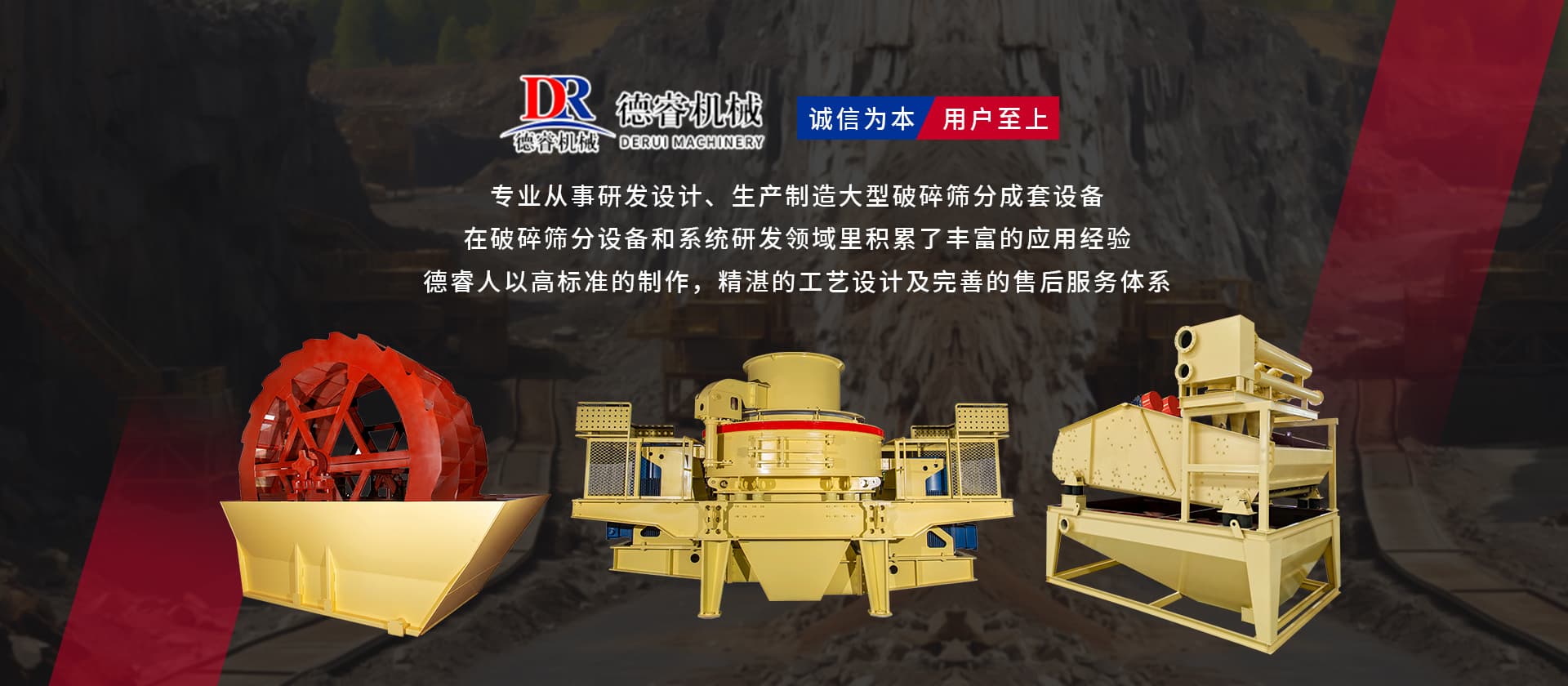 德睿重型機(jī)械是從事研發(fā)設(shè)計(jì)、生產(chǎn)制造大型破碎篩分成套設(shè)備的現(xiàn)代高新技術(shù)企業(yè)集團(tuán),公司總部座落于廣東工業(yè)重鎮(zhèn)、韶關(guān)市湞江區(qū)工業(yè)園,有現(xiàn)代化辦工場(chǎng)地、研發(fā)中心和標(biāo)準(zhǔn)化廠房,多種大型機(jī)械加工設(shè)備10余套,現(xiàn)公司技術(shù)人員40余名。 公司在主要城市均設(shè)有辦事處,配有豐富實(shí)戰(zhàn)經(jīng)驗(yàn)的設(shè)計(jì)工程師,方便為各地客戶現(xiàn)場(chǎng)分析、配置生產(chǎn)線并提供及時(shí)、周到的售后服務(wù)。 目前產(chǎn)品已覆蓋東南亞、中東、非州、歐州等多個(gè)國家和地區(qū),并獲得客戶的好評(píng)。公司已成為主要的專業(yè)礦山設(shè)備,工業(yè)磨粉、碎石制砂設(shè)備的生產(chǎn)和出口基地之一。 “誠信為本,用戶至上”德睿人以高標(biāo)準(zhǔn)的制作,精湛的工藝設(shè)計(jì)及完善的售后服務(wù)體系在破碎篩分設(shè)備和系統(tǒng)研發(fā)領(lǐng)域里積累了豐富的應(yīng)用經(jīng)驗(yàn)。借助在破碎行業(yè)的豐富經(jīng)驗(yàn),公司可向客戶提供碎石制砂生產(chǎn)線設(shè)計(jì)、安裝、調(diào)試等交鑰匙工程,同時(shí)承接破碎系統(tǒng)的爆破、裝運(yùn)、破碎等生產(chǎn)運(yùn)行總承包。